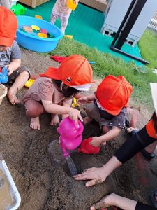 穴を掘り終えると、お友だち皆んなと協力して