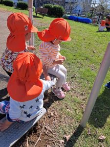 今日は子どもたちが外遊びを楽しんでいる様子を