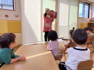 今日は紙芝居「もぐもぐ どうぶつえん」を