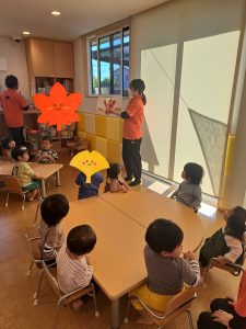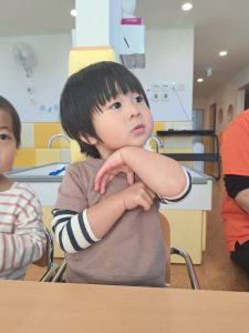 日中は暖かく薄手の長袖でも汗ばむ様子の子どもたちでした![]()
