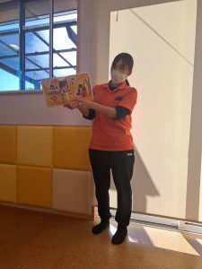 保育者が絵本を開くと「あ!ちゅんちゅんさん!🐿️」と
