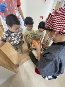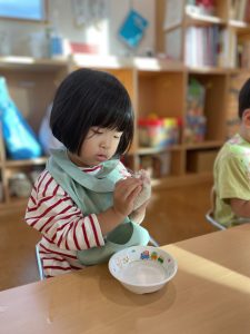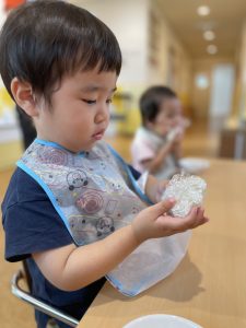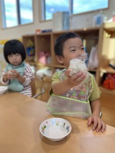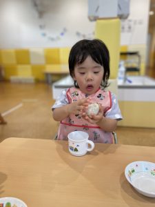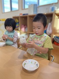 おにぎり作りは、2歳児さんが挑戦しました♬