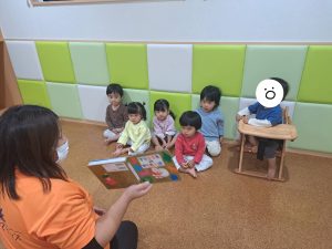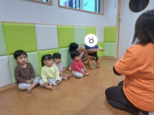 0・1歳児の子どもたちは「」と不思議そうでしたが