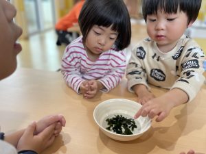 ※食育に使用したわかめでは無いものを提供しています