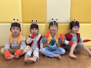 楽器演奏「キラキラ星」、お遊戯「エビカニクス」を