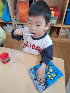 2歳児さんの歯磨きの様子を