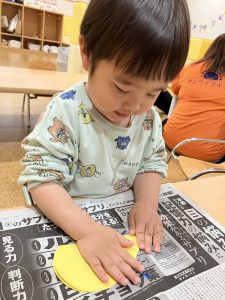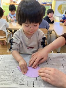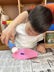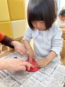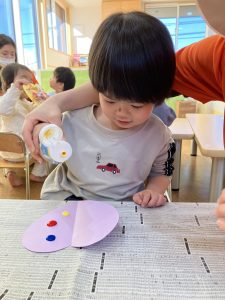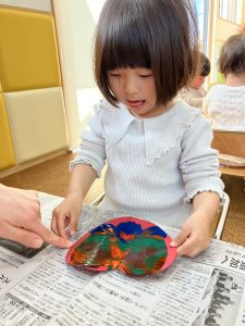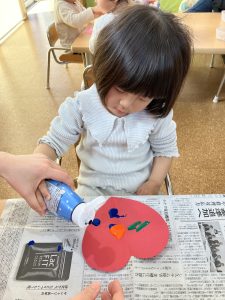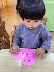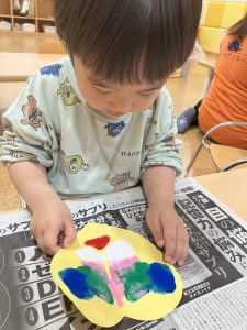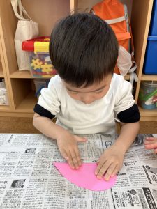 2歳児さんは、デカルコマニーでハートを