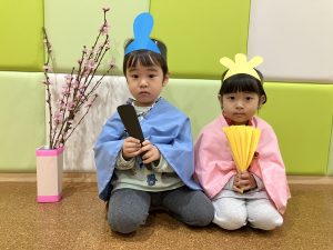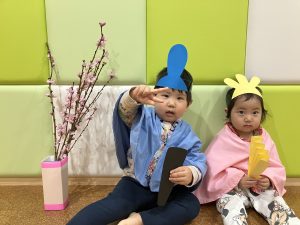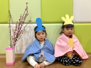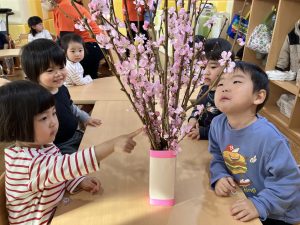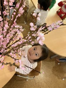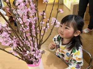 桃の花の香りを嗅ぎ「いい匂い♡」とにっこりしていました!