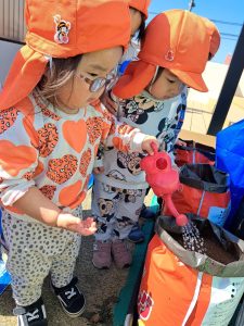 1歳児さんは那珂園で育てているじゃがいも🥔さんに