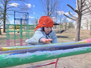公園では滑り台やトンネル、ジャングルジムなどの遊具で