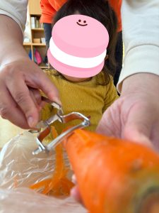 那珂園では、4月の食育活動「野菜の皮剥き」を行いました。