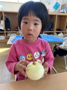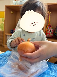 恐る恐る手を伸ばして玉ねぎに触れていた子ども達⭐️