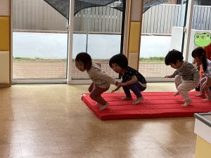 2歳児さんは、【マット、回転、バランスボール】を行いました⭐️