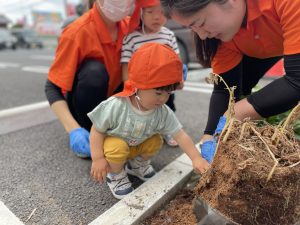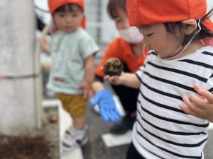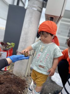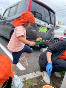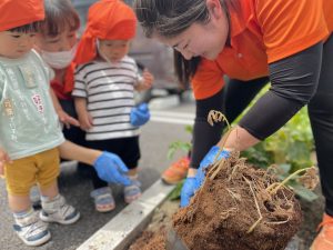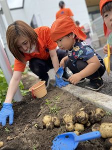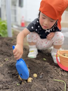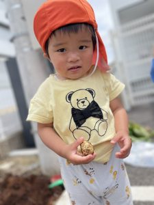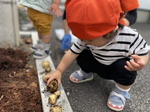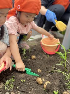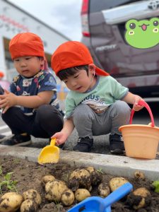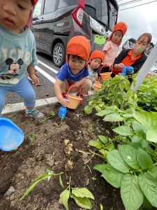 2歳児さんは園にある畑に植えたじゃがいもを収穫しました⭐️