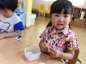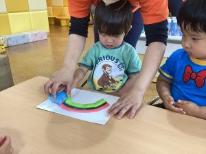 今週は以前お伝えしきれなかった2歳児さんの6月の製作と