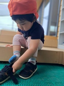 りんご組のお姉さん、お兄さんは自分で靴を履きます⭐️