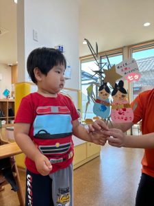 1歳児さんは手形をとってお星様に飾りました⭐️