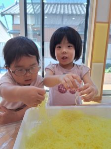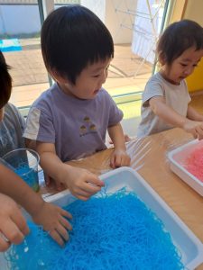 感触遊び第2段【春雨遊び】を行いました⭐️