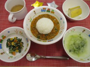 サンライズキッズ保育園 ◎給食の様子 今日の給食は、ドライカレーでした!カレーの匂いが園内にして、給...