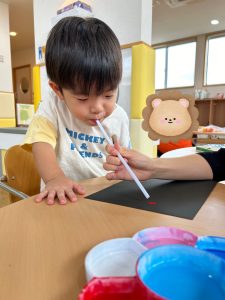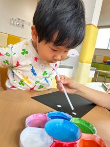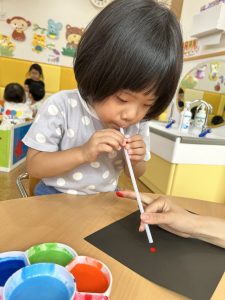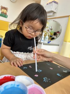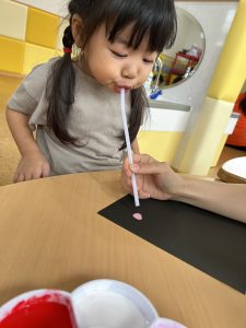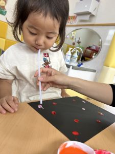 2歳児さんは、ストローを使用しておばけの