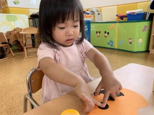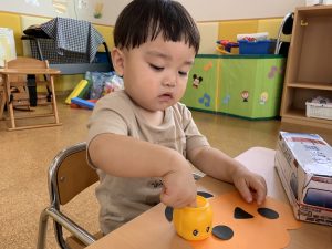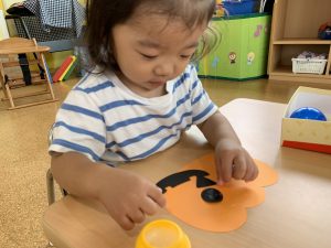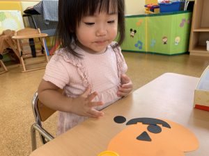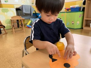 1歳児さんではかぼちゃ🎃にお顔を貼りました⭐️
