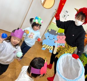 鬼さんと【豆まきゲーム】をしたよ!⭐️