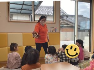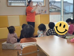 みんなの大好きなパペットと挨拶したり絵本を見たり