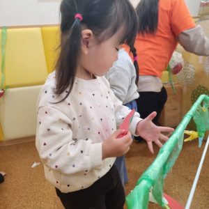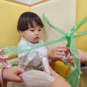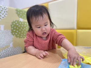 久しぶりの感触遊びで喜ぶ子と少し戸惑う子と