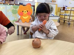 りんごįĩ„ãŽãŠå‹é”ã¯ã€å…ˆį”ŸãŒãŠé‡Žčœã‚’čĻ‹ã›ã‚‹ã¨ã€Œã˜ã‚ƒãŒã„ã‚‚īŧãĢんじんīŧãŸãžã­ãŽīŧã€ã¨å¤§ããĒåŖ°ã§æ•™ãˆãĻくれぞしたよ✨