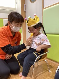 お名前を呼ばれて元気いっぱいにお返事をしたり、お友達にお祝いの歌🎤をプレゼントしてもらいとても喜んでいました😊