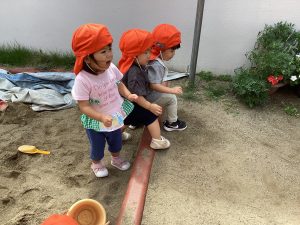 日中も涼しい日があり、久しぶりに園庭に出て遊ぶ事ができました。