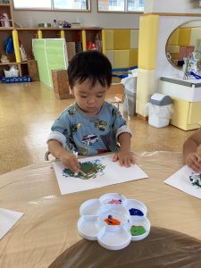 自分のパレット🎨に様々な色が並んでいて、「綺麗だねー」と色彩を楽しんでいるお友達もいましたよ🌈