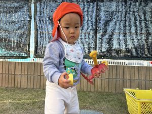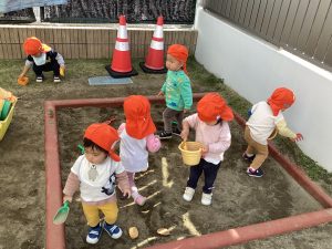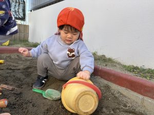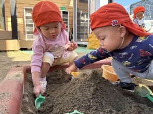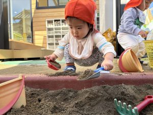 砂場遊び大好きなお友達😍お友達とニコニコ笑顔を見せ合いながら、同じ遊びを楽しむ姿が見られるようになりましたよ。