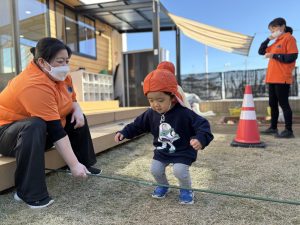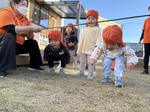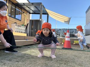 跳んだり、くぐったり、お友達と笑い合ってたくさん身体を動かして身体はポカポカです🥰