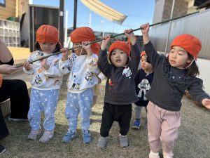 そんな寒さにも負けず那珂園のお友達は園庭を走り回り、元気いっぱいです❤️