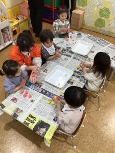 「コロコロ〜」と言いながらとても上手に丸めていくことができました☺️