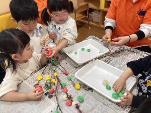 ●みんなで小麦粉粘土を使って、「花もち」作り