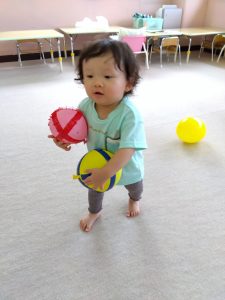 室内では、スタンプ遊びや風船遊びをしたり…