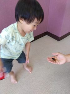 園長先生が園の周りにいたクワガタを捕まえてきてくれ、