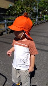 散歩に出かけると、帽子にちょうちょがとまりました ![]()