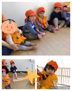子どもたちに衣装をきてもらい、ハロウィン会をしました