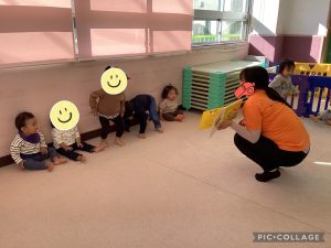 「小さくジャンプ チョン。大きくジャンプ ぴょーん。」と絵本を読むと