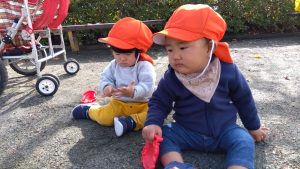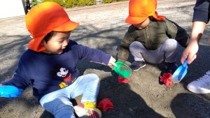 砂の型取りをしたり、シャベルで掘ったりと様々な遊び方を楽しんでいます![]()