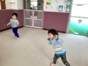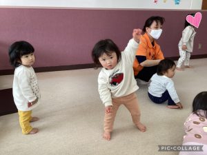 子どもたちも、保育者の真似をしながら楽しく行うことが出来ていました