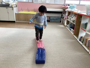 マット運動や平均台渡りなどを取り入れたサーキット遊びを行いました