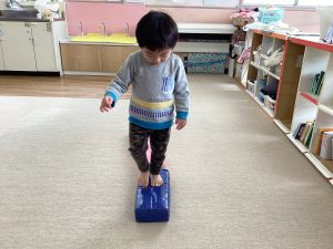 また、小さなフープを出すと上手にけんけんぱなどをおこなったり、
