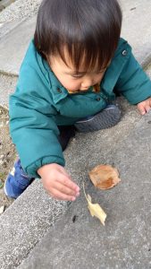 お散歩にもよく出かけ、道中では様々なものを見つけている子どもたち