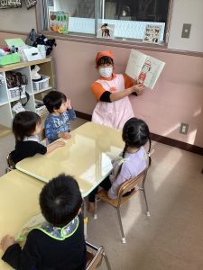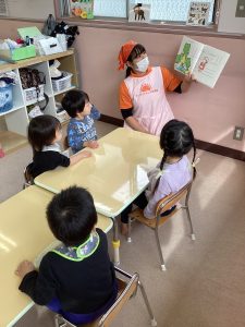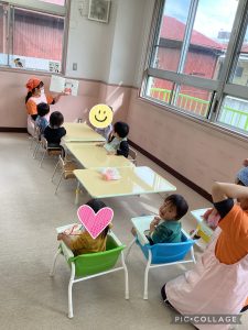 子どもたちも視線を保育者の方に向けてワクワクした表情です