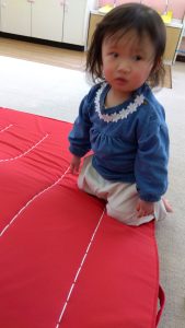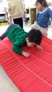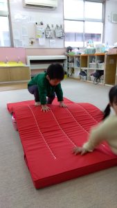 マットに傾斜をつけて歩いて登ってみたり、ハイハイで登ってみたり…