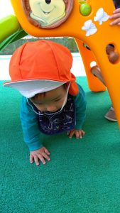 ハイハイや歩いて園庭内の探索を楽しんでいました
